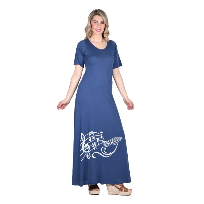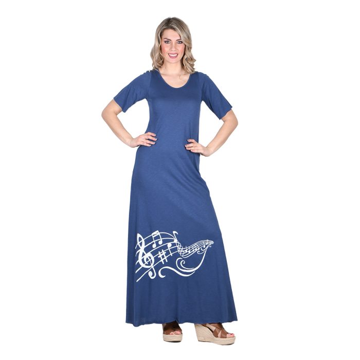Fairyland Φόρεμα Μπλε Γυναικείο Καλοκαιρινό Μaxi Κοντομάνικο Casual Με Νότες – FM-5851-BL