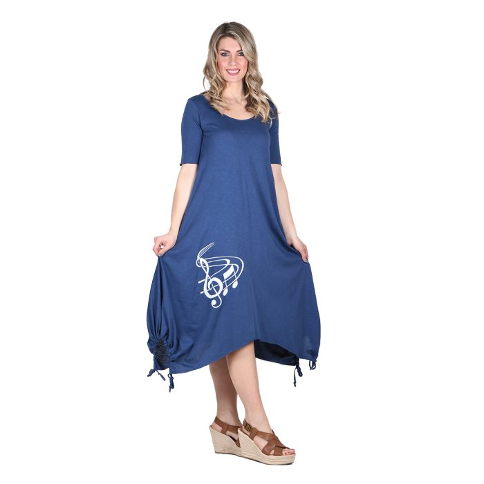 Fairyland Φόρεμα Μπλε Γυναικείο Καλοκαιρινό Κοντομάνικο Casual Με Νότες All Day – FM-5852-BL