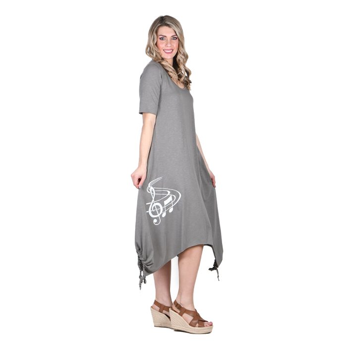 Fairyland Φόρεμα Γκρι Γυναικείο Κοντομάνικο Casual Με Νότες All Day – FM-5852-RG