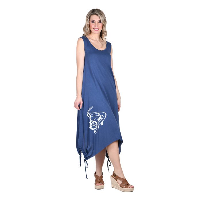 Fairyland Φόρεμα Μπλε Γυναικείο Αμάνικο Casual Με Νότες All Day – FM-6000-BL