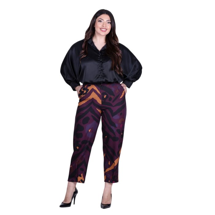 Platinum Παντελόνι Μωβ – Δαμασκηνί Με Γήινα Animal Prtnt Γυναικείο All Day – IT-256-GUV