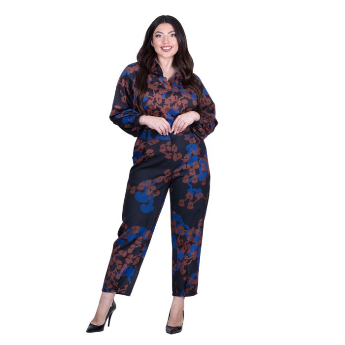Platinum Πουκάμισα Μαύρη Με Μπλε – Καφέ Εμπριμέ Γυναικεία Mακρυμάνικη All Day Free Size – IT-185