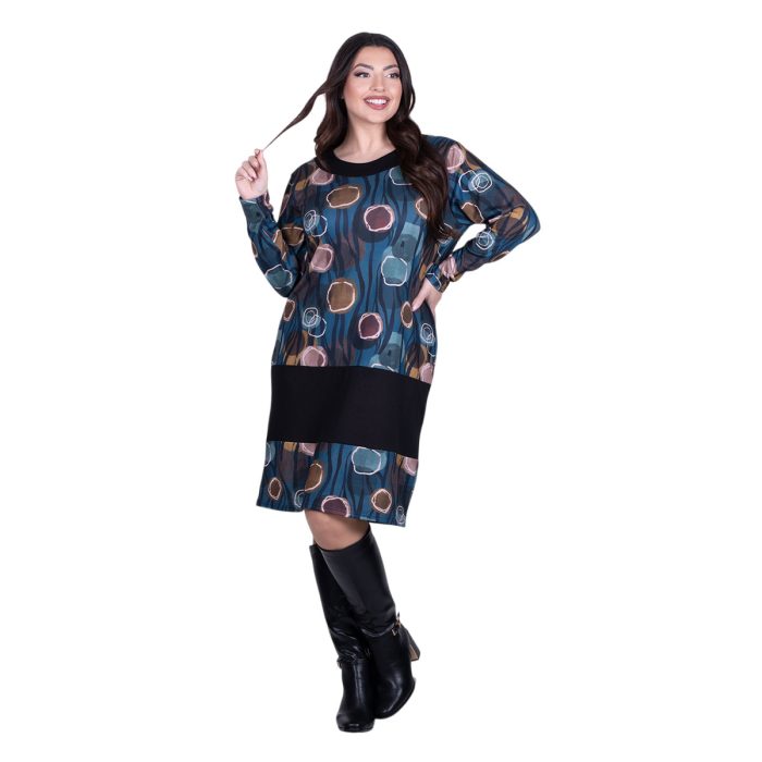 Platinum Φόρεμα Πετρολ Γυναικείο Στενό ”Ο Κήπος Της Εδέμ Patchwork” All Day Free Size – 244-RL