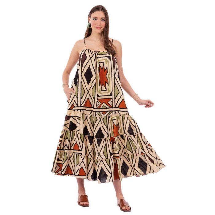 Original price was: €39.90.€29.90Η τρέχουσα τιμή είναι: €29.90.Platinum Φόρεμα Εκρού Με Πολύχρωμα Boho Σχέδια Γυναικείο Μακρύ Τιραντέ Free Size – 82538